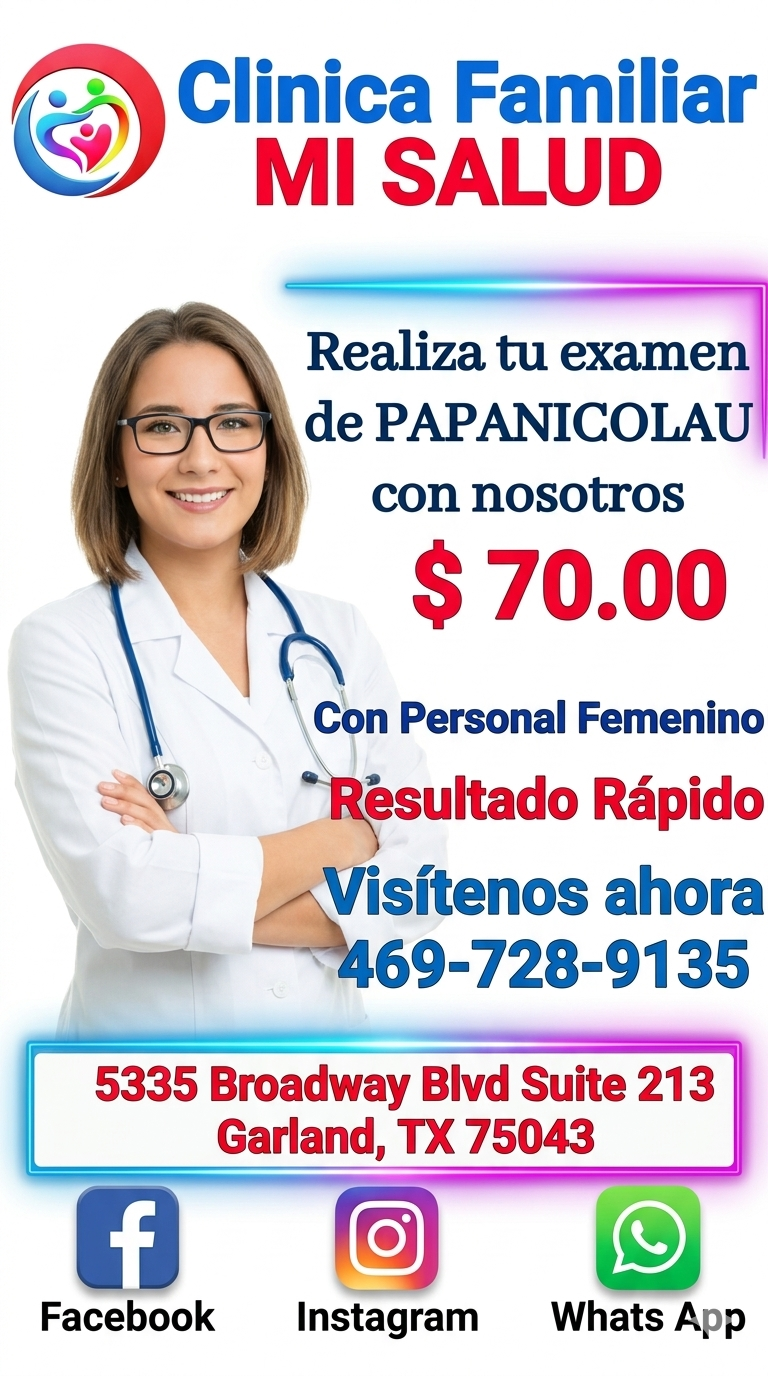 ¿Buscas Servicios de ginecólogia latina confiable en Garland? En Clínica Familiar Mi Salud, ofrecemos atención ginecológica accesible, sin cita previa y completamente en español. Nuestro equipo está aquí para acompañarte en cada etapa de tu salud femenina.